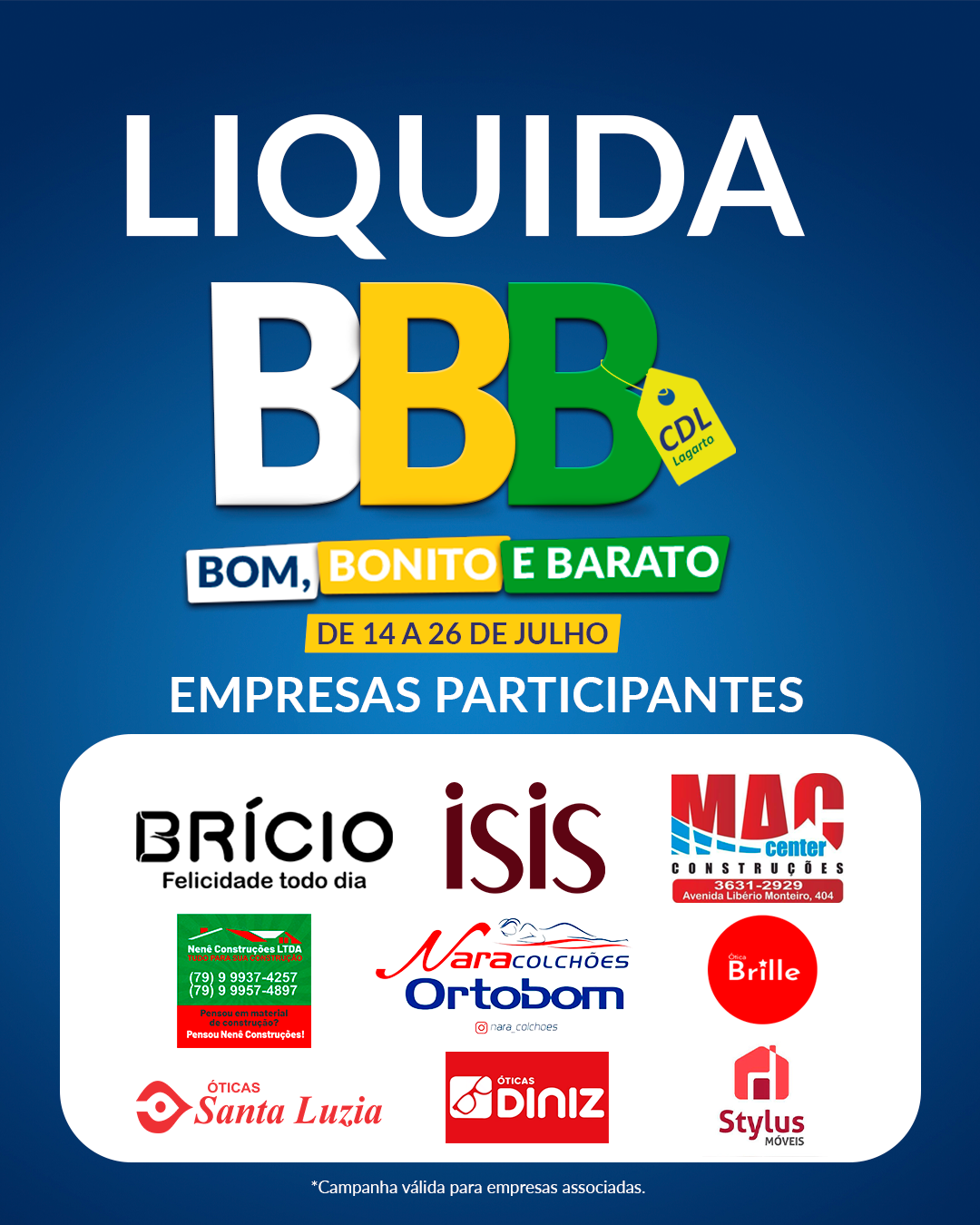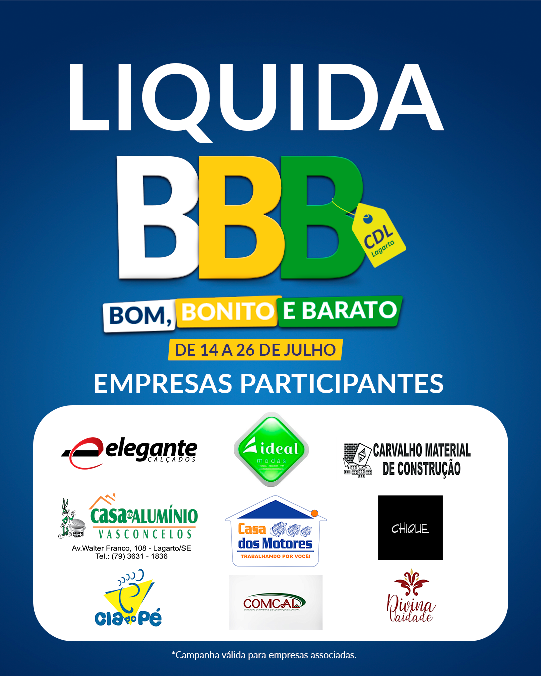 De 14 a 26 de julho, Lagarto viveu dias de muito movimento, oportunidades únicas e descontos de verdade com a campanha Liquida BBB – Bom, Bonito e Barato, promovida pela CDL Lagarto.